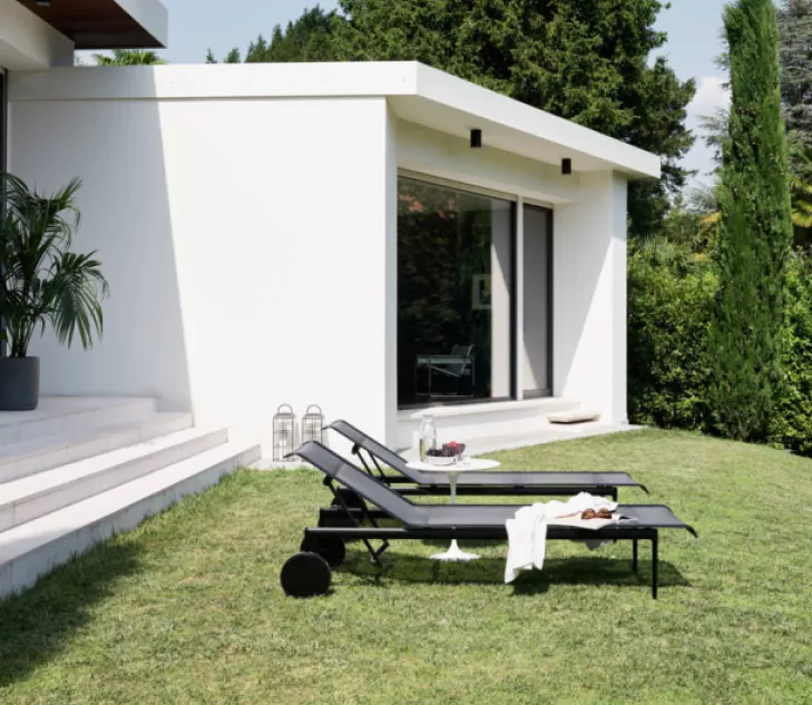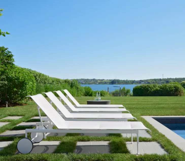 Le bain de soleil 1966 avec dossier réglable de Richard Schultz a agrémenté les patios, terrasses et piscines des maisons modernistes à travers le monde pendant plus de 50 ans, et reste plus que jamais un choix contemporain.