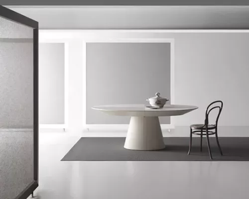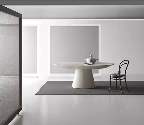 L’apparente simplicité de la forme et le style minimal cachent, d’autre part, les mécanismes de haute technologie, qui permettent une grande extensibilité et le stockage interne des extensions. Adagio est le complément parfait du véritable design italien à une salle à manger, un salon ou une cuisine moderne et minimale.