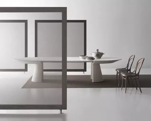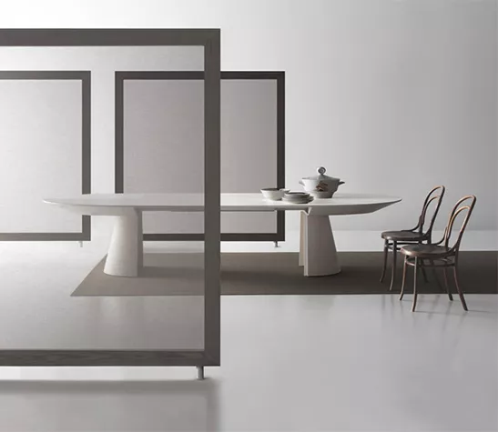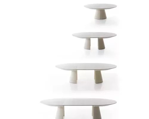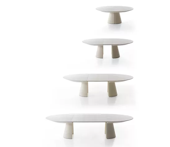 Adagio est une table ovale à rallonges. Elle dispose de 5 longueurs et passe de 6 personnes en configuration normale à 16 personnes, et ce en quelques secondes.