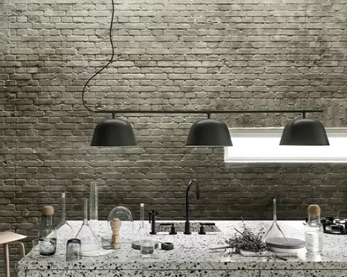 Fabriquée à la main en utilisant des méthodes traditionnelles de brasero, la famille de lampes Ambit se compose de trois typologies: la suspension Ambit, la lampe sur rail Ambit et l’applique murale Ambit.