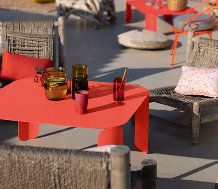 Une table basse métal à utiliser autant à l’extérieur qu’à l'intérieur pour les apéros d'été comme d'hiver.