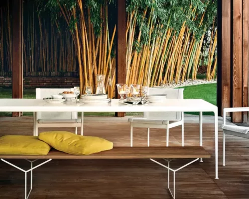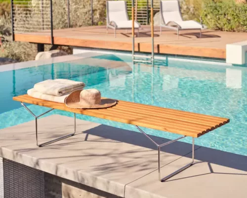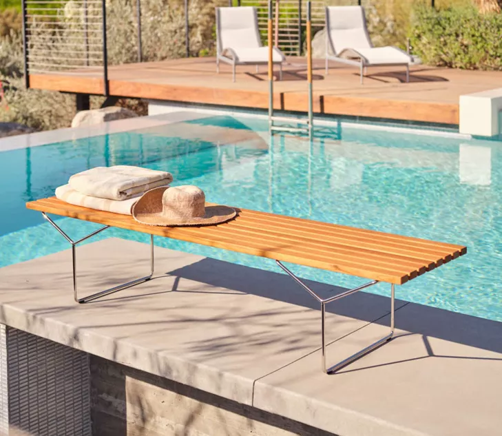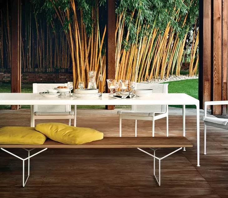 Minimal et épuré, le banc Bertoia est un élément essentiel.