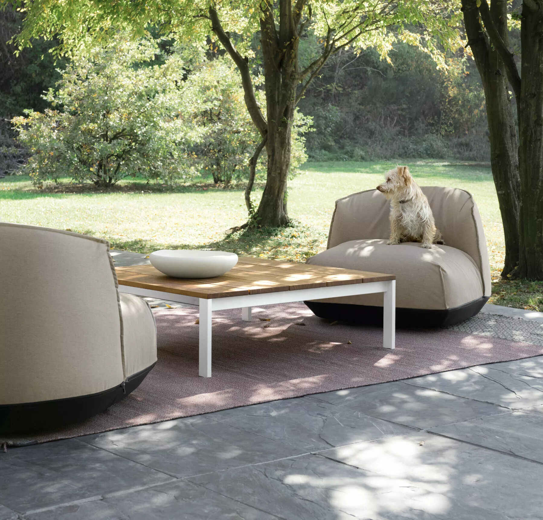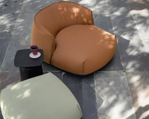 Brioni est une collection de poufs, de fauteuils de salon et de chaises longues nommés d’après un célèbre archipel de la mer Adriatique. Ils ressemblent à de petites îles émergeant de la mer.