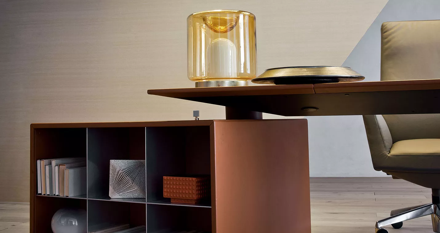 Dessiné en 2008 et réédité par Poltrona Frau, le bureau C.E.O CUBE est un hommage aux designers Lella & Massimo Vignelli.