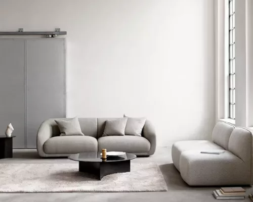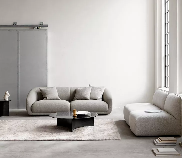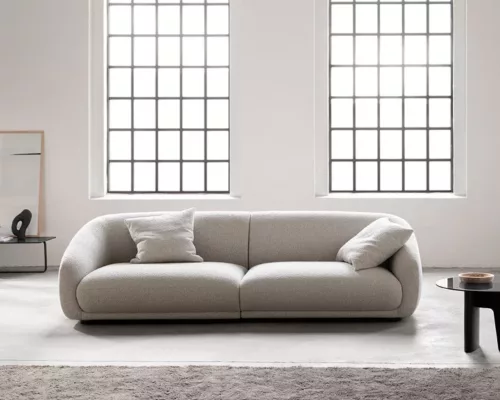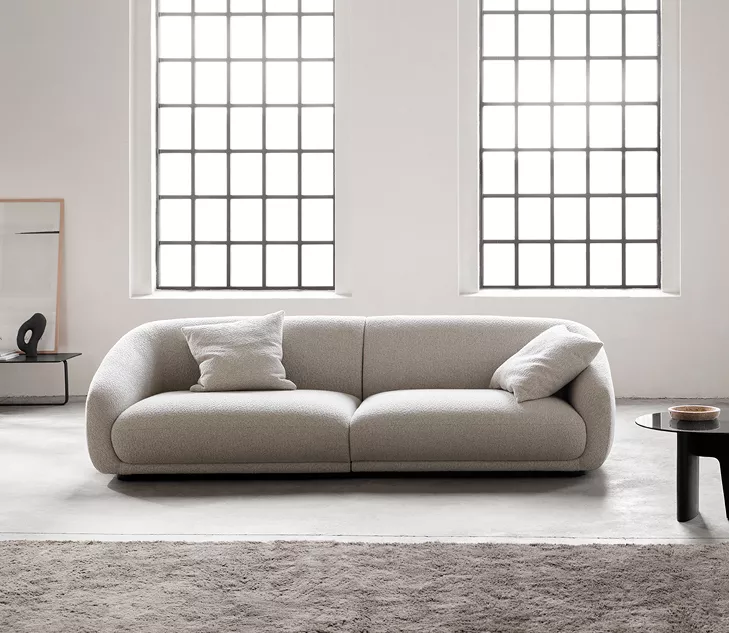 La collection Montholon comprend des canapés 2,5 et 3 places, éveillant les sens avec des courbes accueillantes et la douceur apaisante d’une surface tactile.
