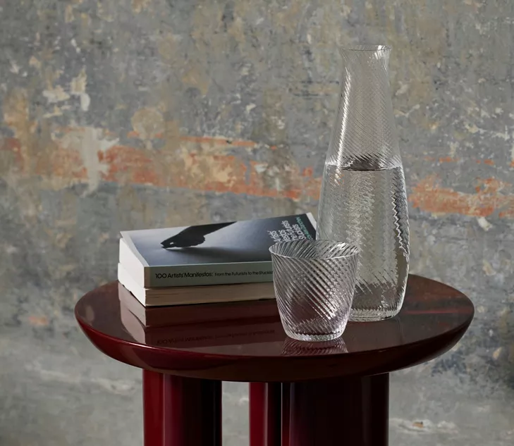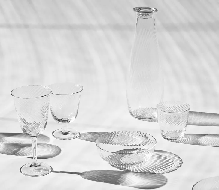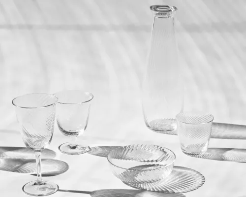 D’une apparence simple et résolument contemporaine, cette carafe arbore un motif subtil qui évoque la nature tourbillonnante de l’eau.