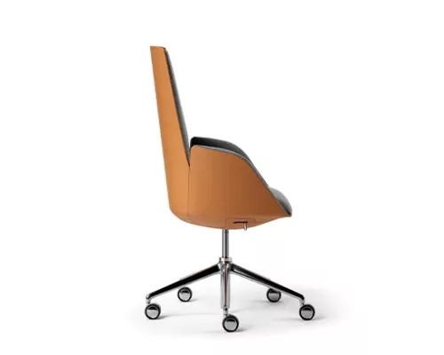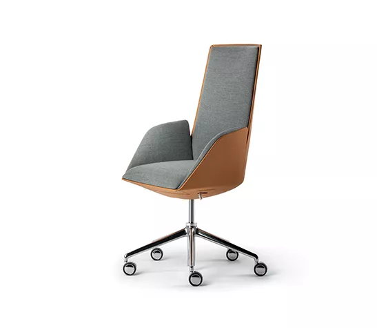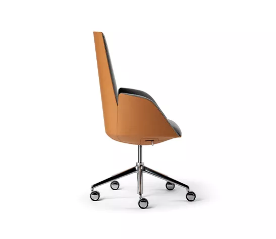 Ce projet reprend le design léger et interactif de TRUST et il est parfaitement conforme à la nouvelle vision du bureau de direction de Poltrona Frau. L’étude de l’ergonomie est particulièrement approfondie. Le mécanisme synchronisé est intégré dans la monocoque et il est optimisé encore davantage par Poltrona Frau pour offrir une très grande expérience de confort.