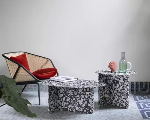 Chap est une table basse rectangulaire proposée en deux tailles et deux finitions.