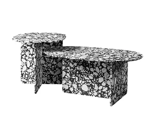 La structure de la table basse Chap est la suivante: base et plateau en marbre ou en verre. Elle convient parfaitement dans un univers de bureau, hospitalier ou résidentiel.