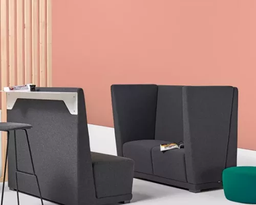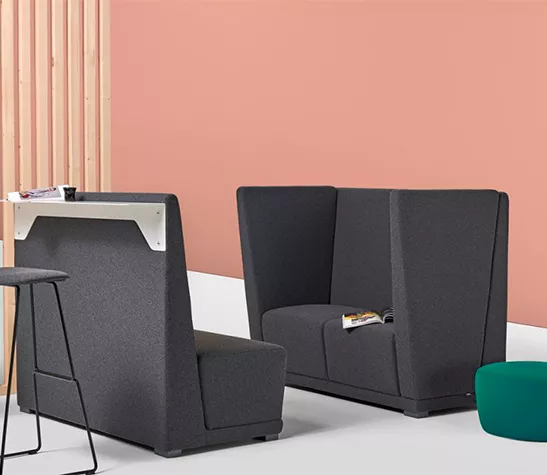 Il y a la version banc, ou la possibilité de choisir entre deux hauteurs de dossier différentes c’est parfait pour créer “Salons” et espaces de réunion où l’intimité est importante.