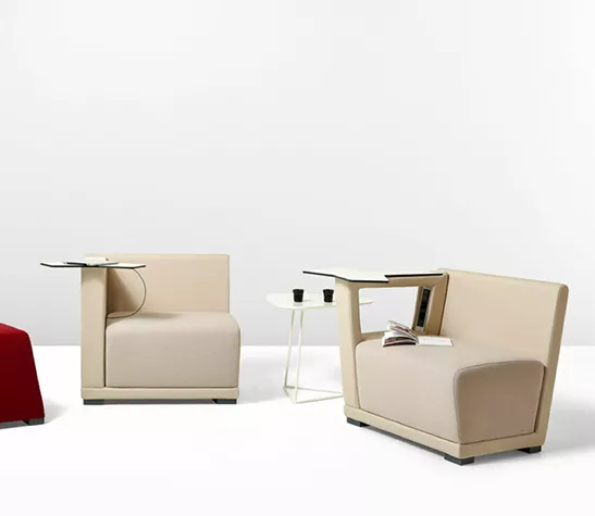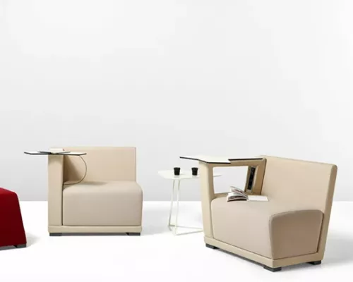 Les accoudoirs avec possibilité d’électrification ils rendent technologiques, les assise et interactifs, parfaits pour les situations de salon et d’attente moderne.