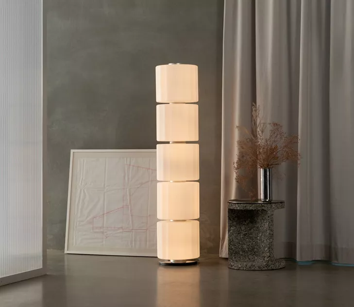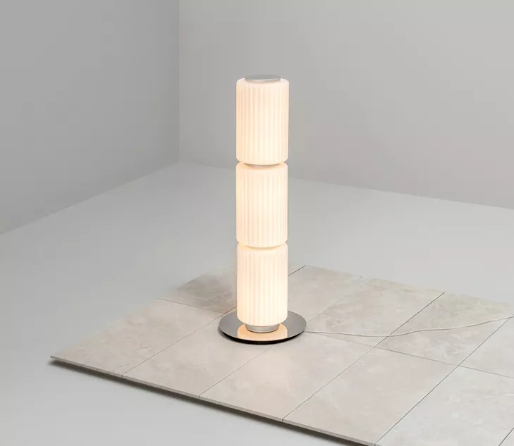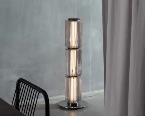 La colonne symbolise l’ordre, la symétrie et la magnificence, à l’instar des colonnes doriques grecques que l’on trouve dans l’architecture classique. La surface facettée de la colonne imite les cannelures utilisées sur les bâtiments et les temples pour créer une impression de rythme, qui diffuse progressivement la lumière lorsqu’elle rayonne dans l’espace.