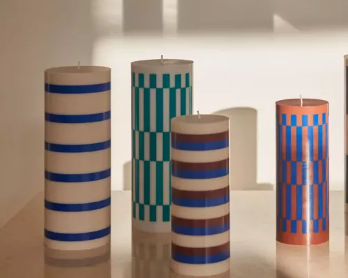 Très stylisées, ces bougies aux motifs géométriques sont disponibles dans une palette de couleurs tendance, ajoutant une touche d’originalité à vos soirées d’hiver !