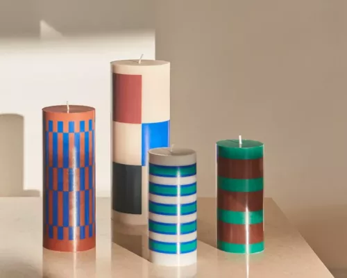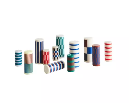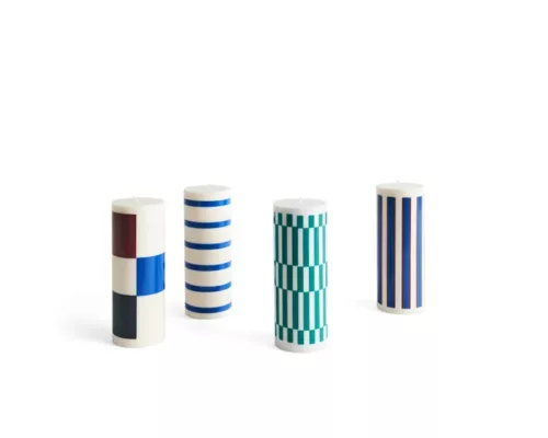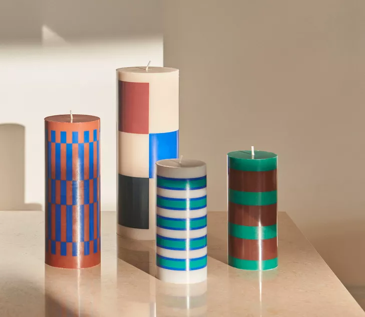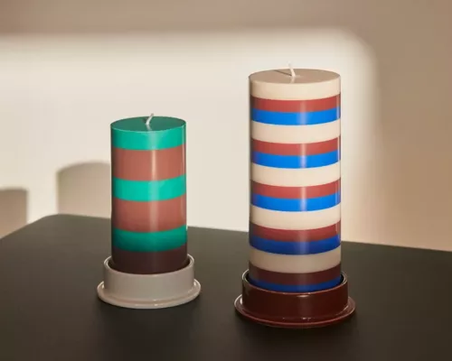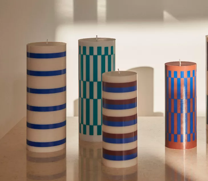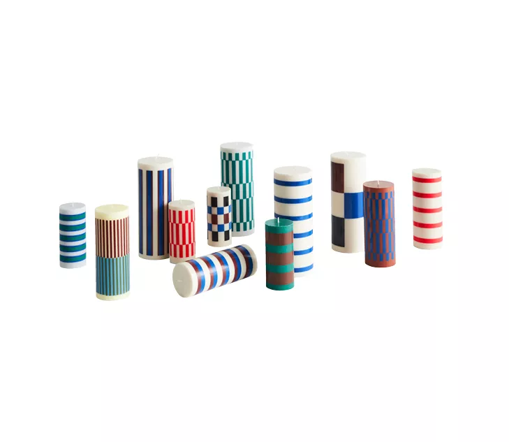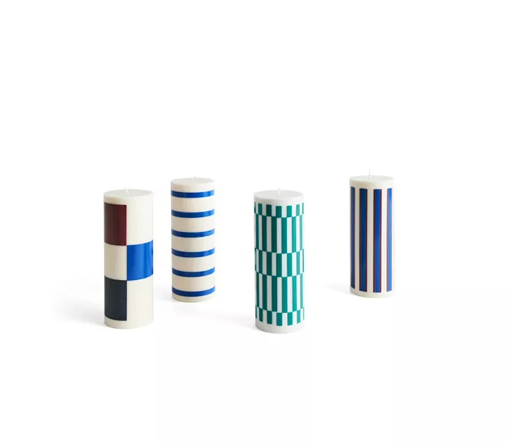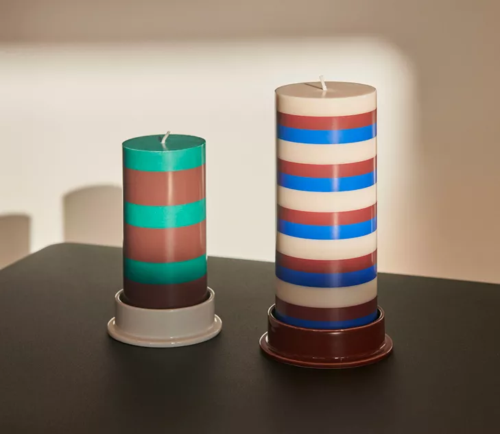 Les bougies Column de Hay arborent de larges rayures colorées pour apporter une touche de couleur vive à votre intérieur.