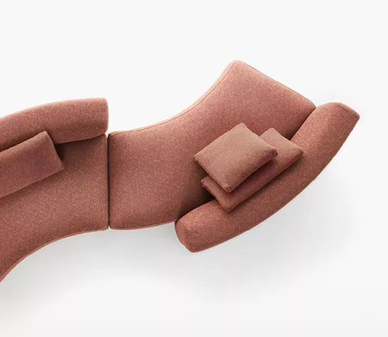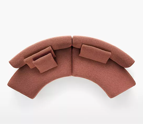 Aux modules existants, caractérisés par des sièges de différentes profondeurs et longueurs, et aux éléments d’îlot plus récents, s’ajoute une nouvelle version à base et dossier incurvés, idéale pour créer une atmosphère de convivialité grâce à ses faces dialoguées.
