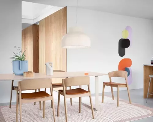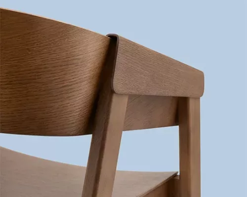« Cover est né du désir de créer un fauteuil en bois confortable et contemporain. Créer un fauteuil confortable et contemporain en bois. Avec les détails de son dossier incurvé qui se replie délicatement autour des pieds arrière et sa matérialité et sa matérialité chaleureuse, la chaise d’appoint Cover empilable traduit les idées de l’artisanat scandinave en une chaise d’appoint.