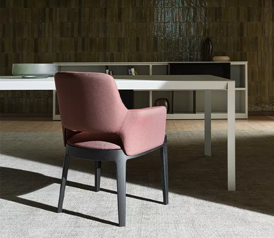 Les éléments de la collection Devon expriment le savoir-faire artisanal et le traitement habile des matières premières de la plus haute qualité. Les deux versions de Devon, avec ou sans accoudoirs confortables, vous permettent de placer la chaise dans n’importe quel contexte, un environnement privé ou professionnel, autour d’une table à manger, d’un bureau ou d’une table de conférence.