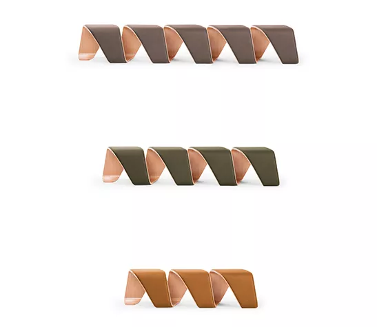 Créée par le duo de designers Leonardo Rossano e Debora Mansur, grâce à leur forme en bois distincte qui sépare délibérément chaque siège du reste de la structure, la ligne de bancs DNA sans dossier intègre un sentiment de modernité et de fonctionnalité dans un seul élément. Fabriqué entièrement en bois de plage dans la version originale avec des finitions en chêne ou en wengé, en plus des liens en acier découpés au laser qui relient chaque élément, ce matériau de haute qualité ajoute une stabilité et une polyvalence supplémentaires au design innovant des bancs. Pour améliorer le confort de nos meubles pour ceux qui en désirent plus, les bancs modulaires sont livrés avec un certain nombre d’options personnalisables qui pourraient être ajoutées- notamment des sièges et une surface rembourrée des détails frontaux en cuir et en textile de différentes couleurs qui s’adaptent à tous les usages.