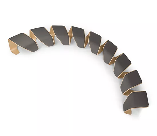 Inspiré par les formes dynamiques de la biogénétique, le banc modulaire DNA est constitué d'un seul élément de contreplaqué de bois courbé, assemblé de manière spéculaire.
