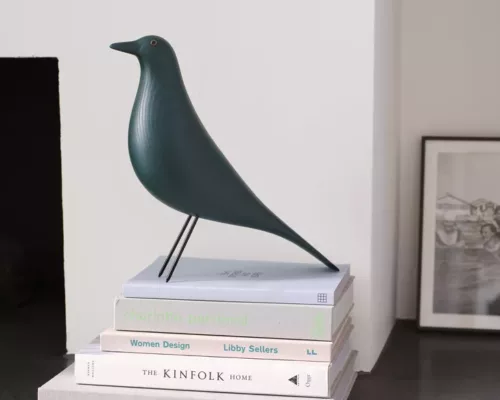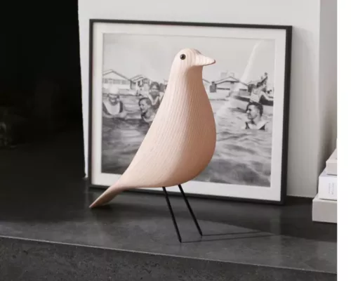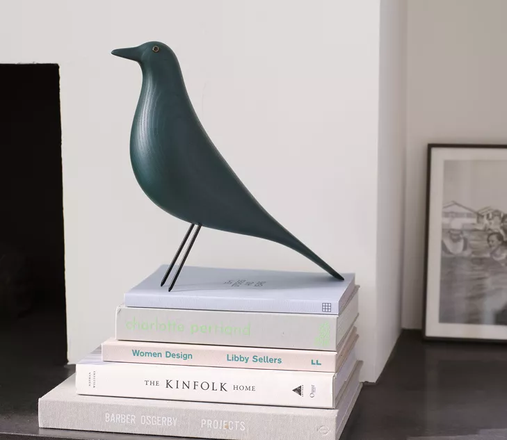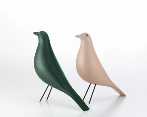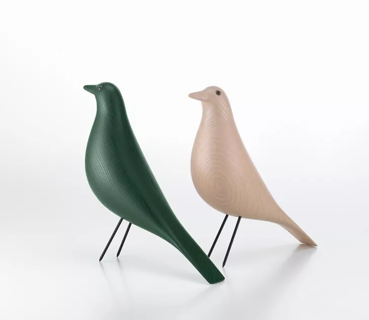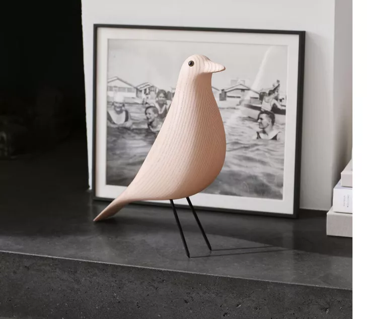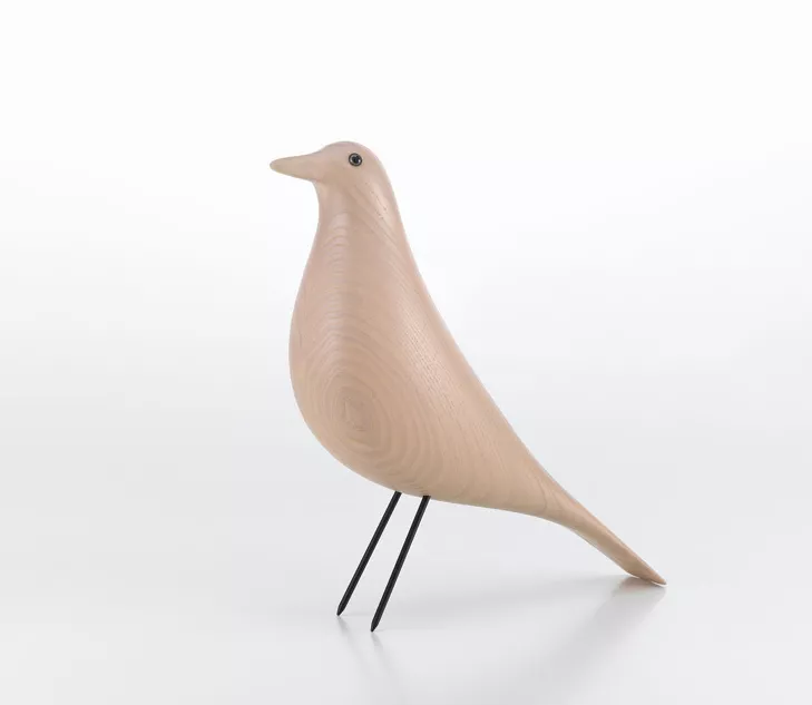 Le duo de designers formé par Charles et Ray Eames affectionnait la décoration de leur résidence privée avec une variété d’objets et d’accessoires rapportés de leurs voyages. Au cœur de leur salon, trône depuis plus de cinquante ans une sculpture d’oiseau en bois. Bien que l’Oiseau Eames House Bird de Vitra ne soit pas représentatif du style habituel de Charles et Ray Eames, il incarne néanmoins leur attachement pour l’art populaire américain.