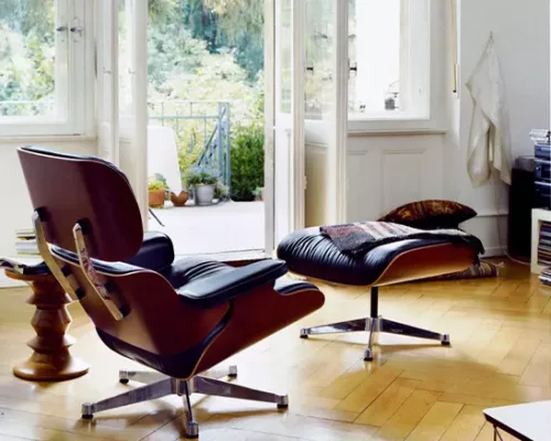 Le fauteuil Lounge Chair conçu en 1956 a défini de nouvelles références : il est plus léger, plus élégant, plus moderne et plus confortable que les fauteuils club traditionnels. Ces qualités en ont fait une des créations les plus connues de Charles et Ray Eames, lui décernant un statut de classique dans l’histoire du mobilier moderne.