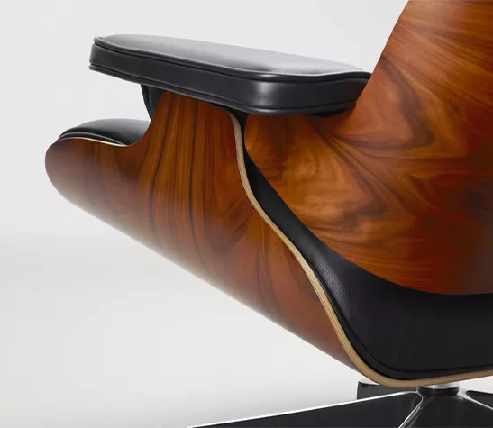 Le processus de création de l'iconique Lounge Chair de Charles & Ray Eames a duré plusieurs années. Il répond aux exigences d’un fauteuil généreux qui offre un confort absolu allié à une qualité du plus haut niveau, dans les matériaux comme dans la fabrication.