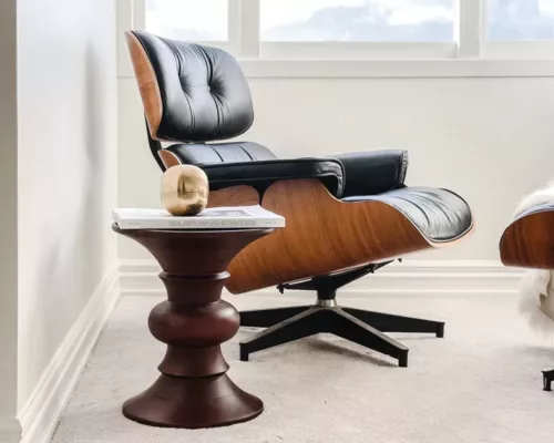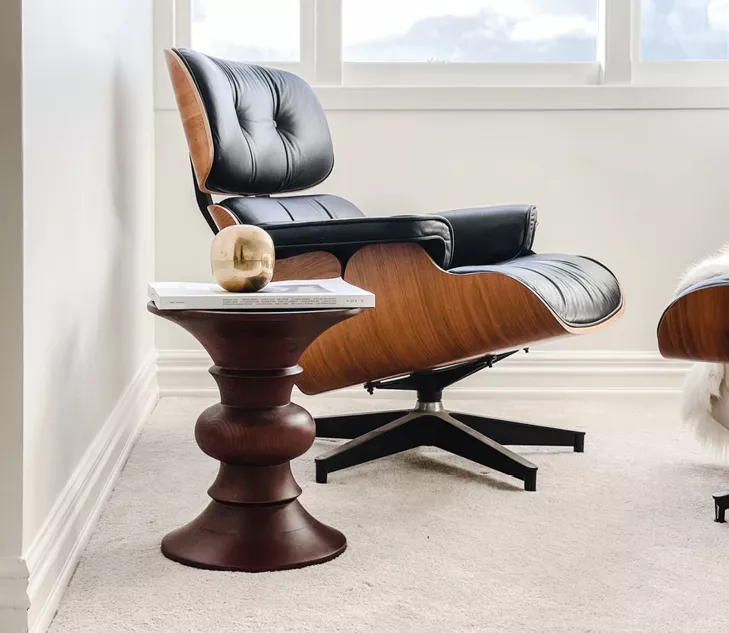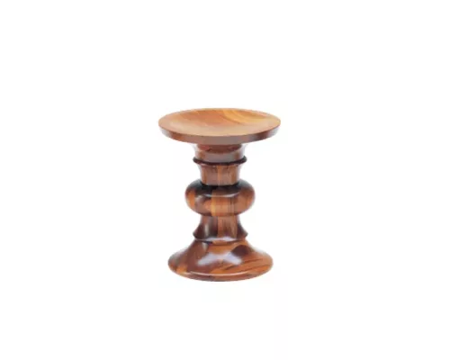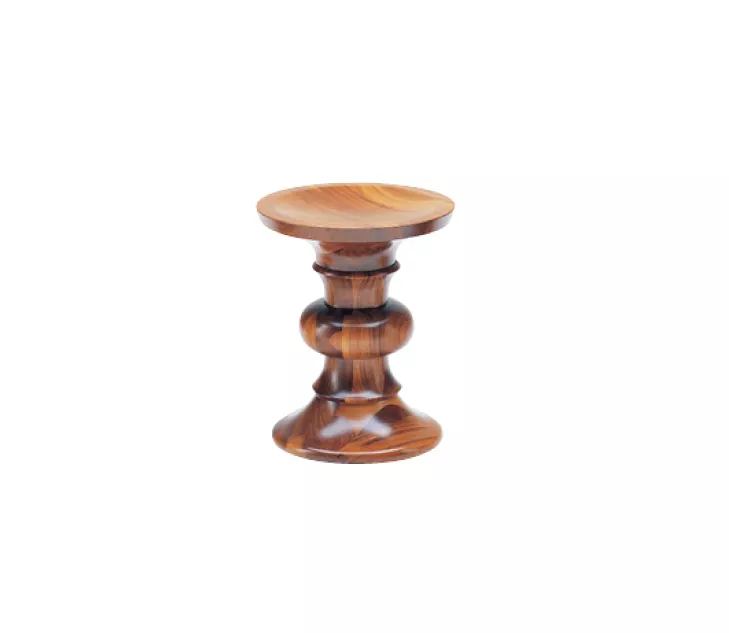 Les modèles A, B et C partagent les mêmes dimensions – une hauteur d’assise de 38 cm et un diamètre de 33 cm. La partie centrale du tabouret présente des profils variés façonnés au tour. Avec des formes concaves, convexes ou biseautées, le tabouret Eames évoque l’apparence d’un siège africain ou d’une pièce d’échecs surdimensionnée.