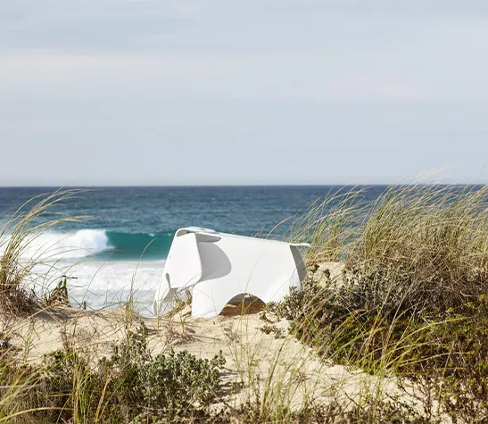 Matériaux : Polypropylène teinté dans la masse. Existe en contreplaqué moulé avec placage en frêne, cerisier américain.