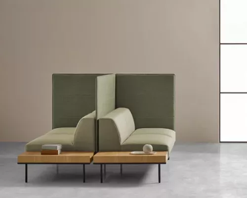 La collection ESCALAS est composée d’un ensemble d’éléments rembourrés tels que: sièges, sièges avec dossier, accoudoirs, panneaux de confidentialité et tables pouvant être combinés avec souplesse sur des plateformes en profilés d’aluminium de différentes tailles pour créer des canapés traditionnels ou des formes modulaires complexes. La géométrie et les proportions précises, associées au large éventail d’éléments disponibles, permettent une infinité de configurations facilitant leur intégration dans différents contextes et environnements, aussi bien dans les espaces publics que privés.