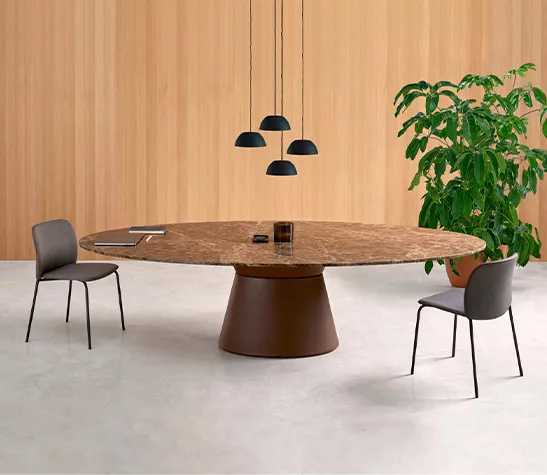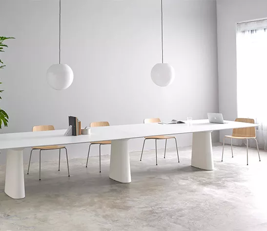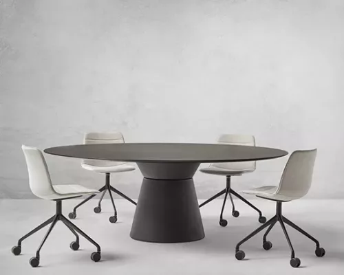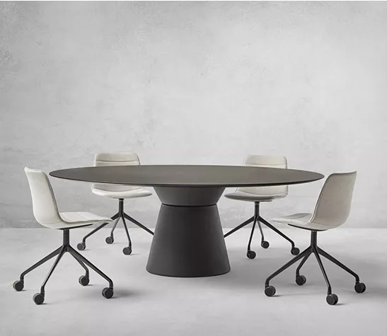 Le programme de tables ESSENS se compose de 6 types de bases en polyéthylène 100% recyclables qui permettent de composer des tables dans une variété infinie de formats. Les bases sont disponibles dans une large gamme de couleurs standards. En option, les bases peuvent être peintes dans toutes les couleurs de la carte RAL en brillant et mat. Les plateaux sont fabriqués avec une grande variété de matériaux et de formats en une seule pièce ou par sections de taille infinie. Les tables peuvent être équipées de différentes prises, chargeurs, connexions et accessoires de gestion de câblage.