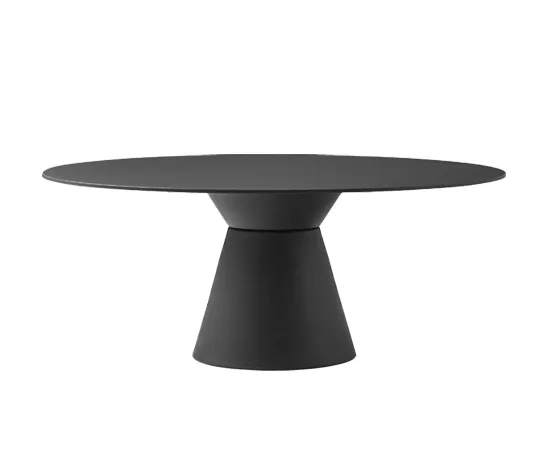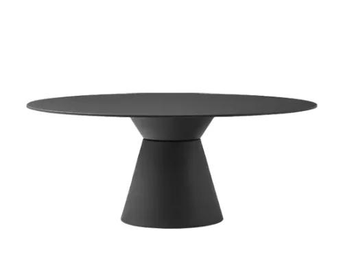 Le plateau de la table se décline en 120, 140 et 160 cm de diamètre.