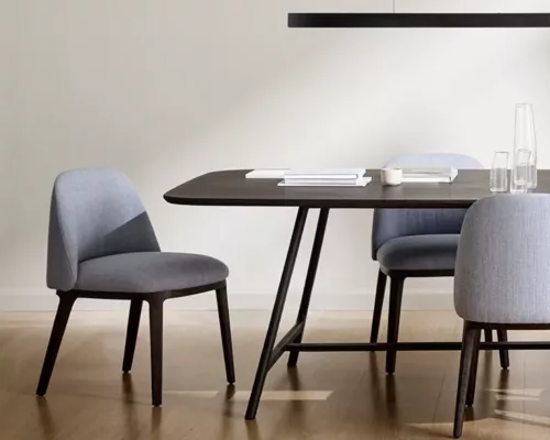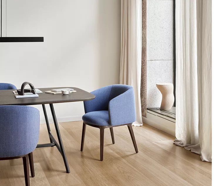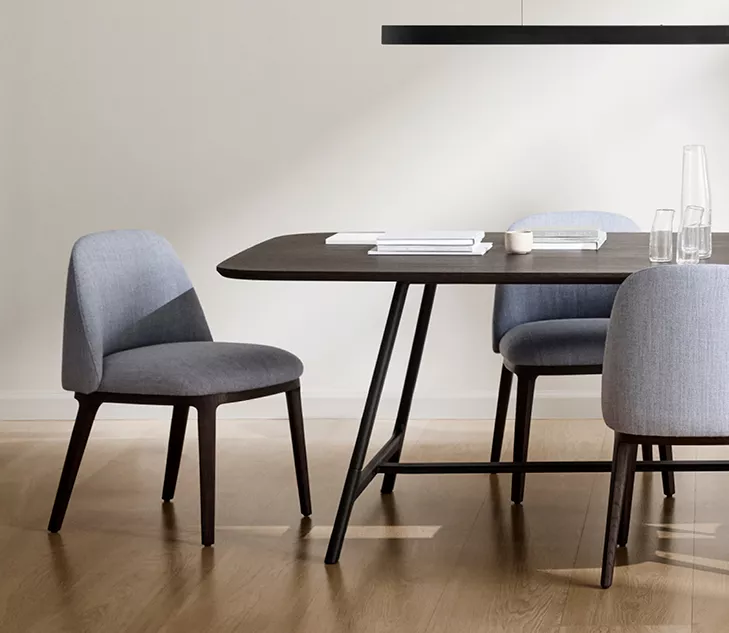 La chaise de salle à manger Event dégage une simplicité visuellement frappante qui dément son savoir-faire réfléchi et complexe.