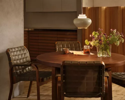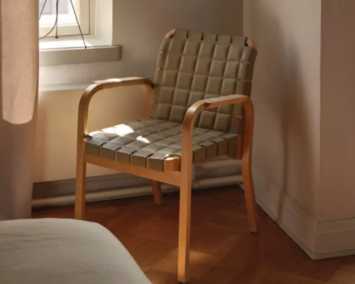 Conçu à l'origine par Alvar Aalto en 1947, le fauteuil 45 revient dans la collection pour apporter chaleur et raffinement aux intérieurs contemporains.