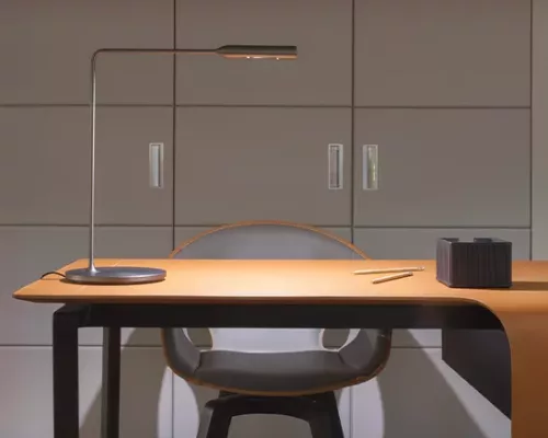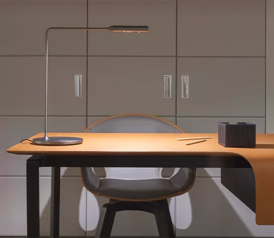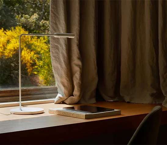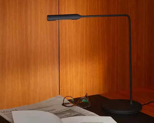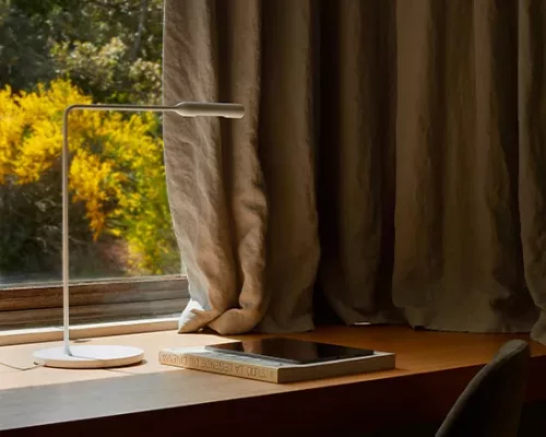 Lampe idéale pour les ambiances spacieuses, la Flo Desk s’impose lorsque l’espace est un facteur clé et que la lumière doit être dirigée sur une surface plane.