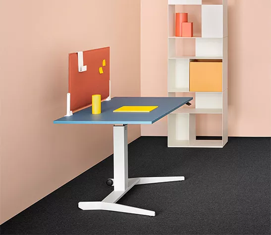 Follow Me est la nouvelle table polyvalente, peu encombrante et réglable en hauteur, conçue pour une utilisation assis-debout intuitive, simple et dynamique.