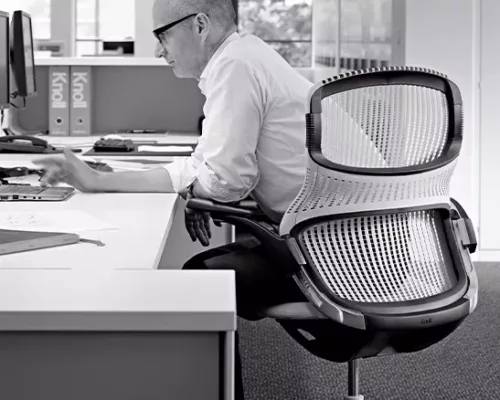 Le siège de bureau Generation de la marque Knoll est un fauteuil ergonomique au design très singulier.
