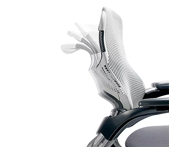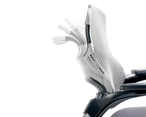 Le dossier en élastomère de ce fauteuil ne possède pas de cadre dorsal rigide, lui permettant ainsi d’être d’une très grande flexibilité et offrant une liberté de mouvement avec un maintien optimal grâce au soutien lombaire intégré dans la technologie du dossier. Les accoudoirs de ce fauteuil de bureau sont directement reliés au dossier afin de permettre un confort intégral et la possibilité d’utiliser les accoudoirs même lors de l’inclinaison du dossier flexible.