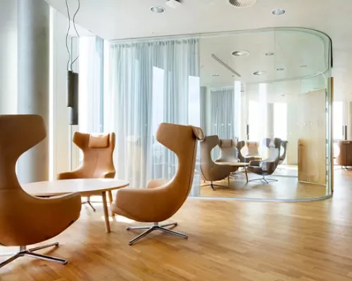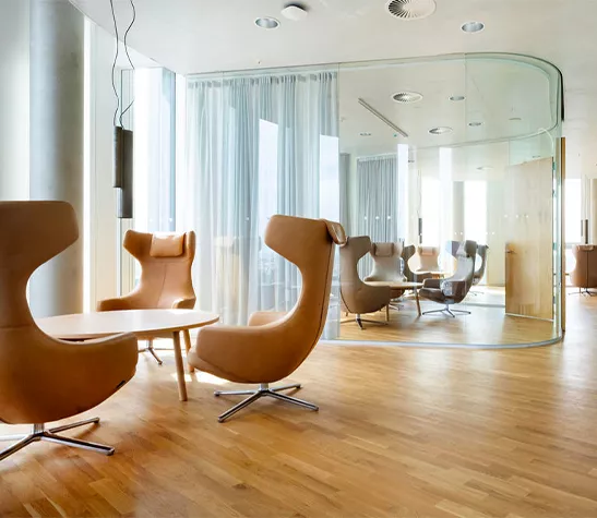 Avec leur rembourrage généreux, leurs accoudoirs accueillants et leur mécanisme synchrone dissimulé sous le rembourrage, les fauteuils pivotants Repos et Grand Repos offrent un confort inégalé.