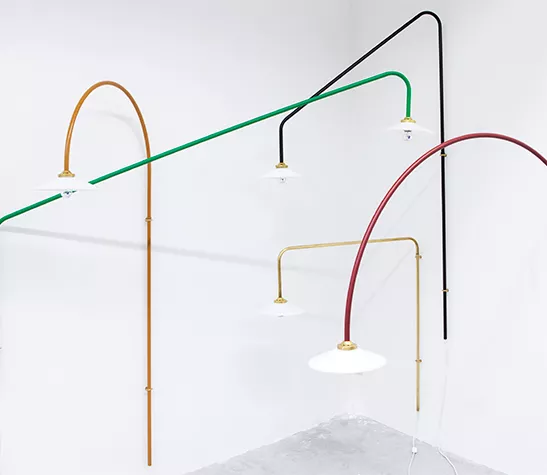 Avec leur design linéaire, les appliques Hanging lamp ressemblent à des traits de crayon de couleur tracés dans les airs : comme des dessins matérialisés dans l’espace.