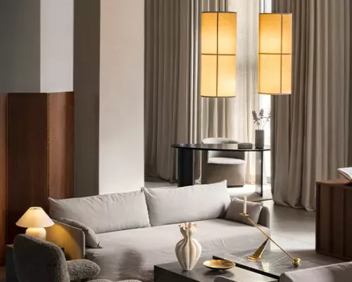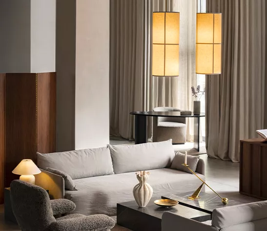 La suspension Hashira est parfaite dans un salon, une salle à manger, un couloir ou une chambre à coucher. Elle distille une atmosphère de luxe discret pour une ambiance à la fois sereine et raffinée.