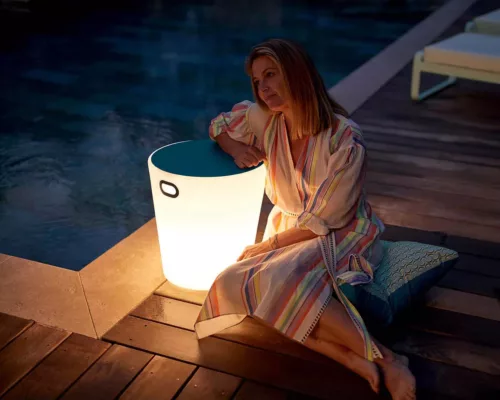 Face à un manque d’assises pour le nombre de convives, qui n’a jamais tenté d’utiliser une table d’appoint en guise de tabouret ? … Avec le tabouret lumineux Inouï, c’est (enfin) possible ! Ce produit d’un genre inédit est également équipé de la technologie Bluetooth. Via l’application Fermob lighting, il peut être commandé à distance et créer des atmosphères lumineuses variées.