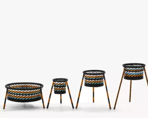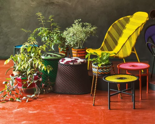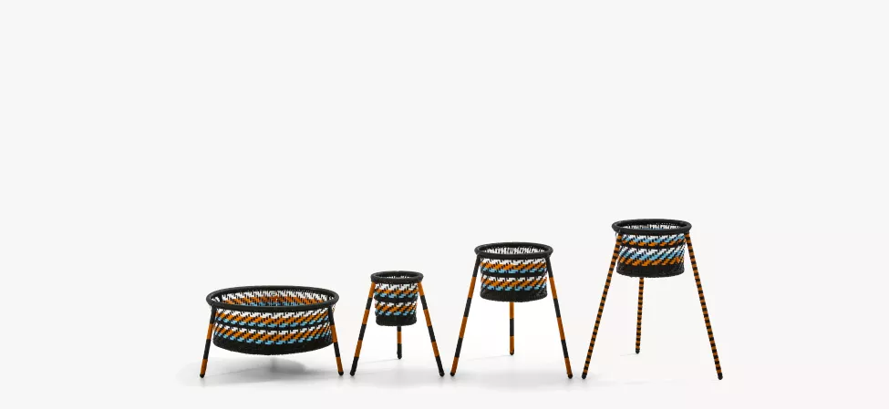 Une collection réalisée en tissant le fil utilisé pour les filets de pêche.