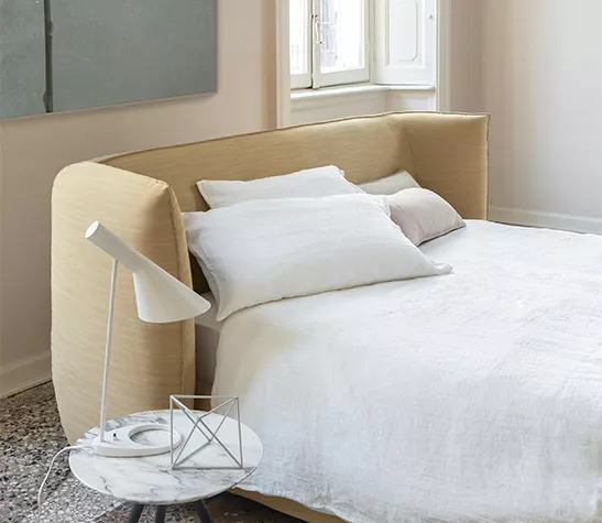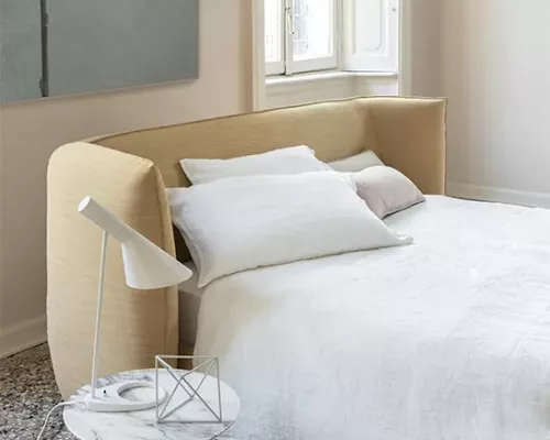 Jill est un canapé avec la possibilité, y compris le matelas, de se transformer en lit: un complément et deux solutions