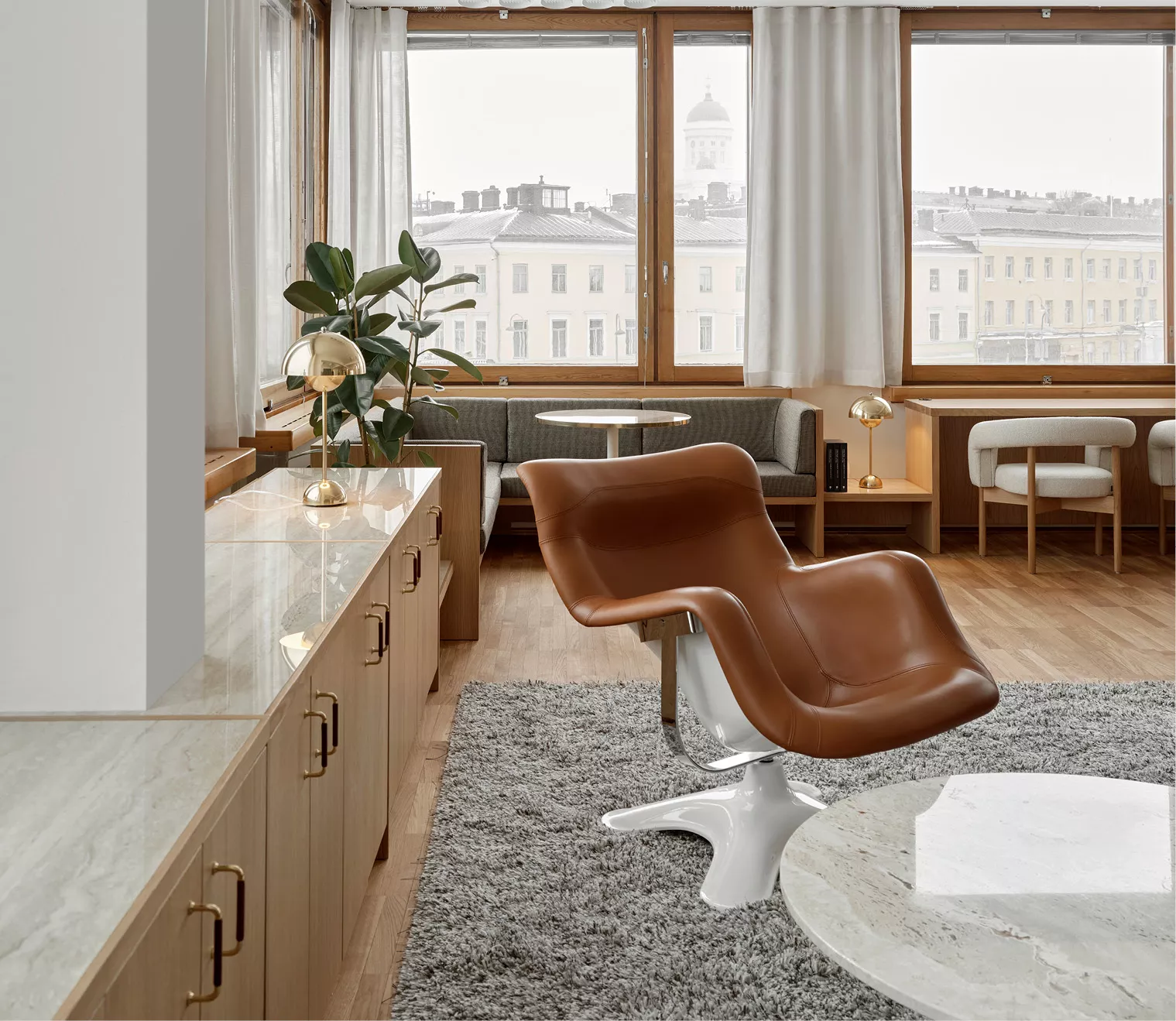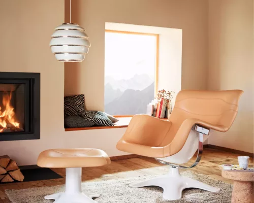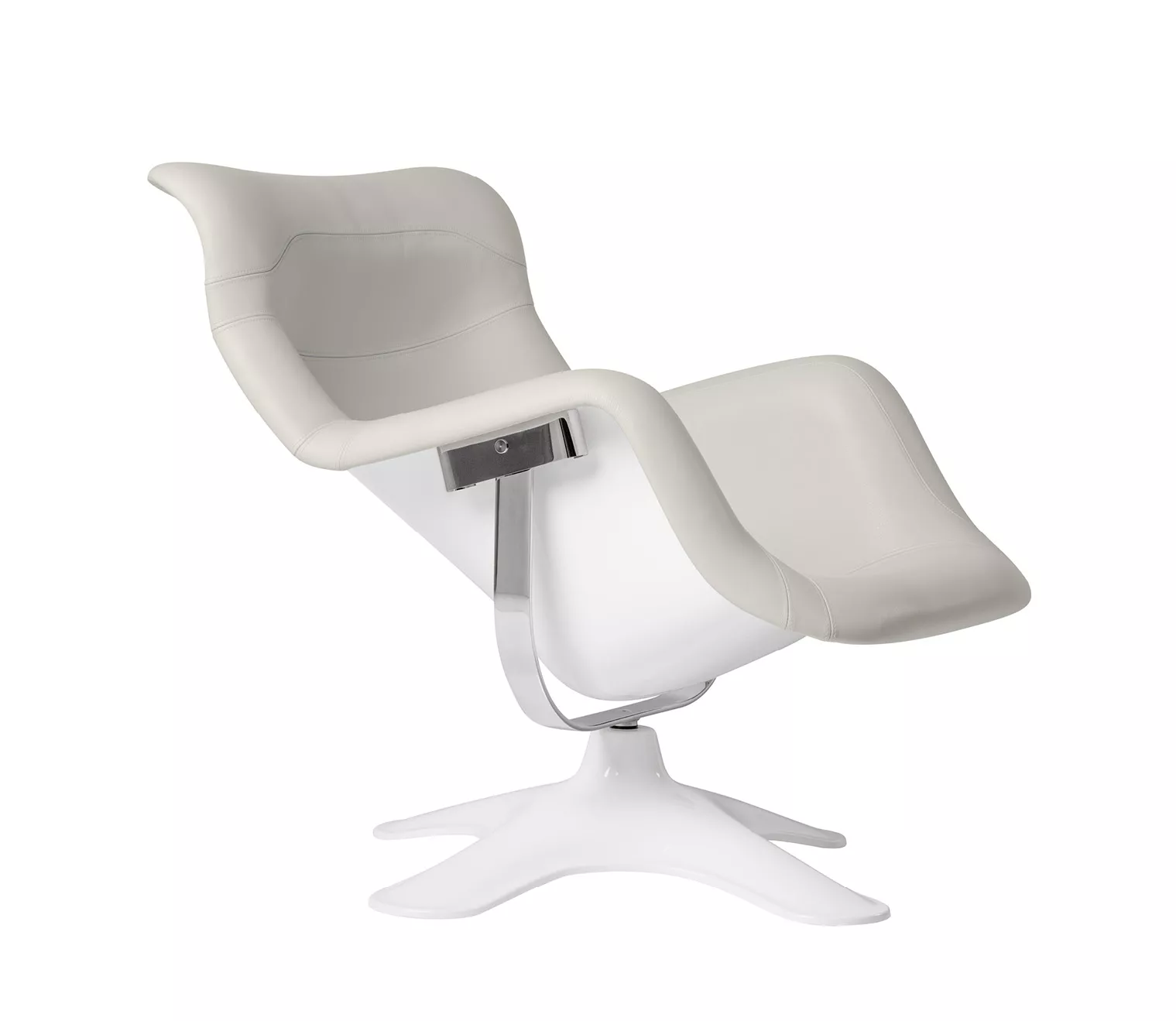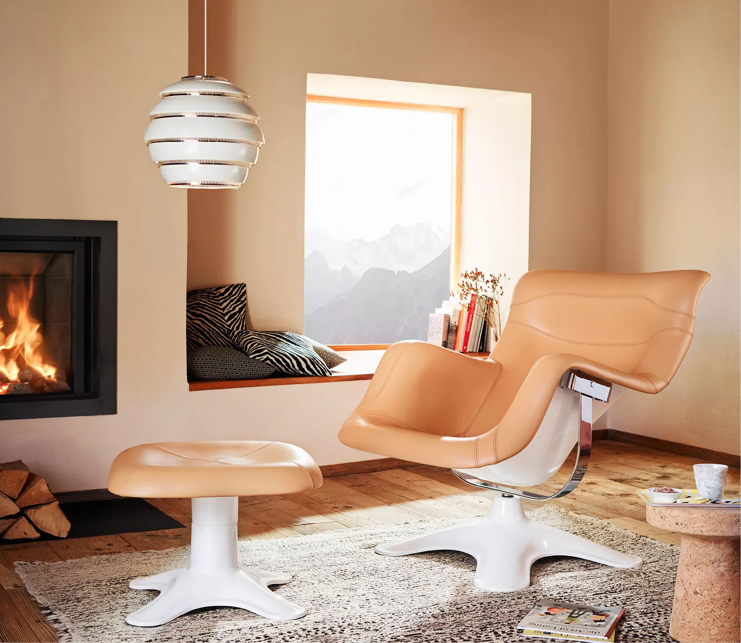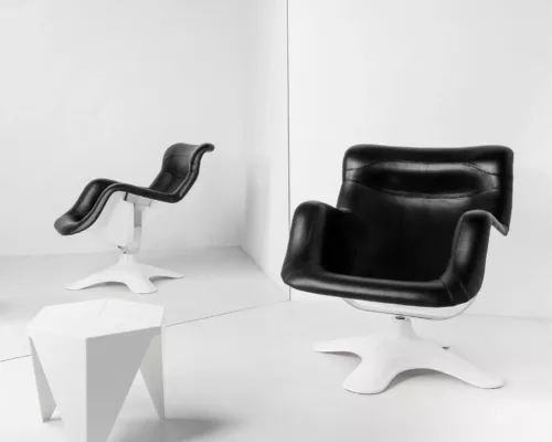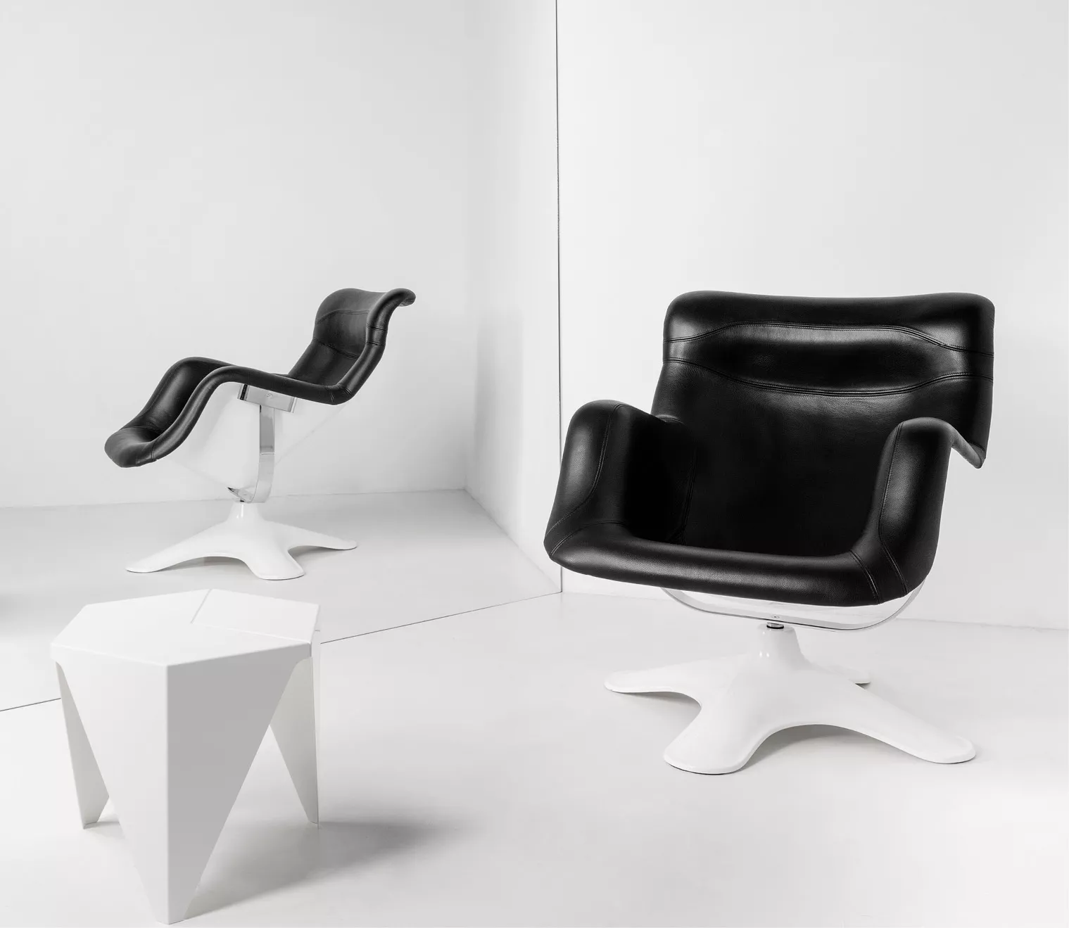 Inspiré par la silhouette humaine, ce fauteuil iconique est né d’une expérience ludique : Kukkapuro façonnait des chaises en neige avec sa fille, perfectionnant ses dimensions au fil des années.