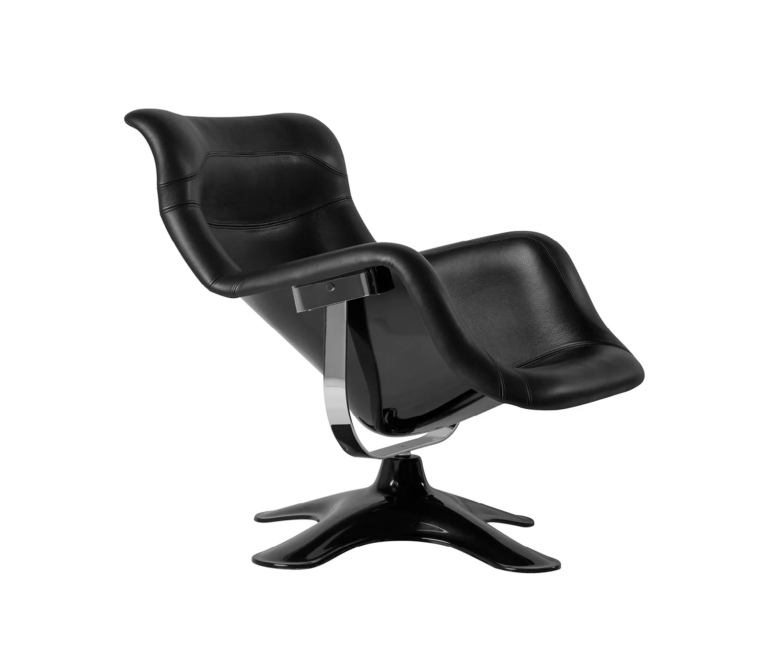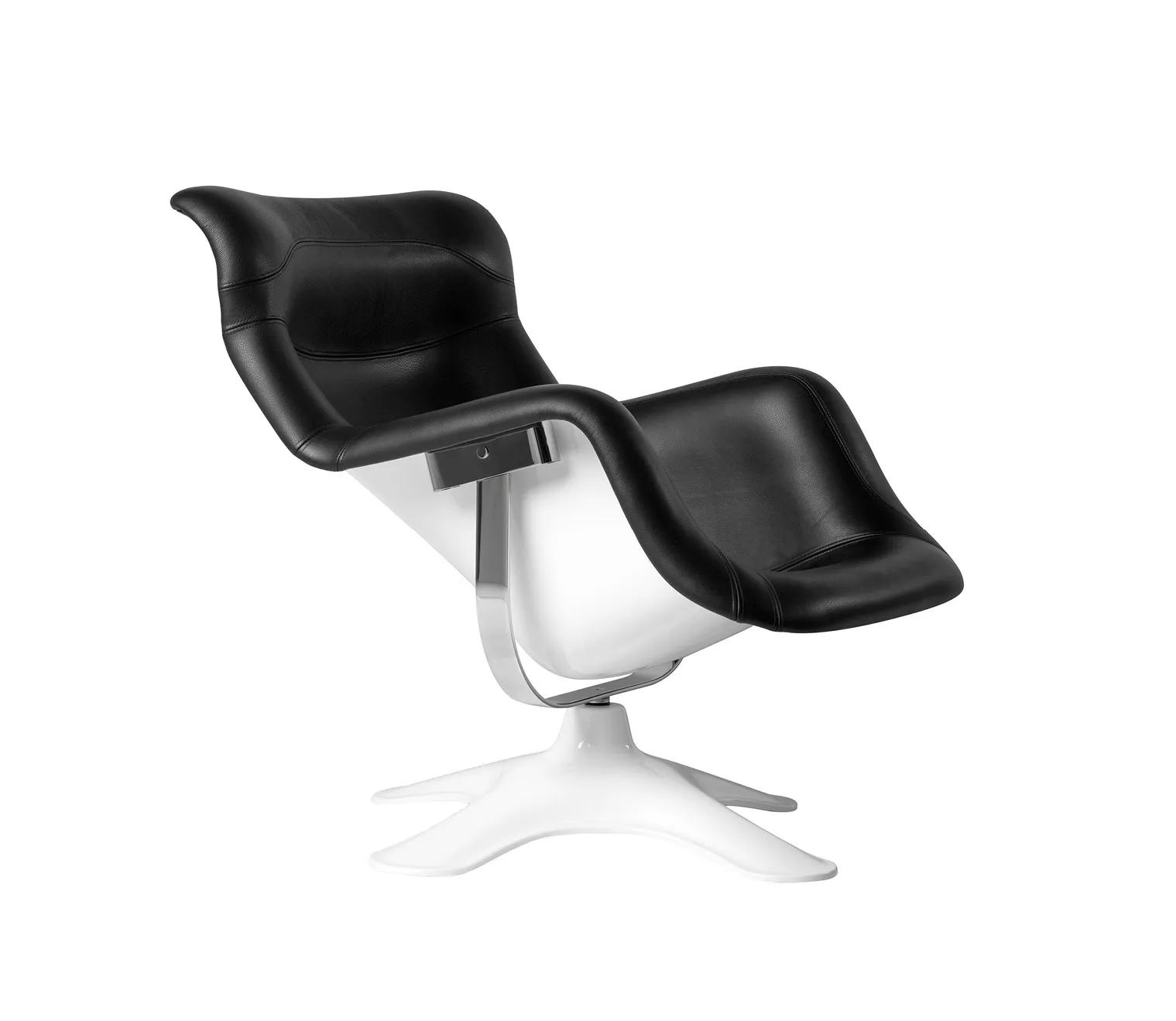 Le fauteuil lounge Karuselli, édité par Artek, à la fois distinctif dans son style et d'un confort incomparable, incarne la vision du designer Yrjö Kukkapuro, qui a su allier fonctionnalité, ergonomie et formes organiques.