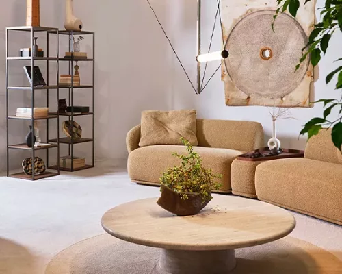 Leon conçue par Andrea Parisio pour Meridiani est une table basse disponible entièrement en bois avec finition laquée mate ou brillante ou dans la version avec plateau en marbre.