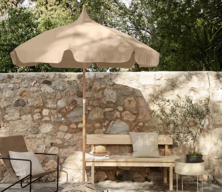 Avec sa forme de pagode romantique et sa tige en bois certifiée FSC™, le grand parasol d’extérieur est idéal pour les pique-niques dans le jardin, la plage et partout où vous avez besoin d’un abri contre le soleil.