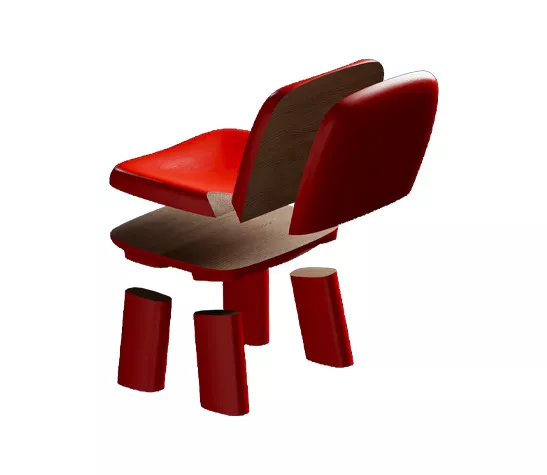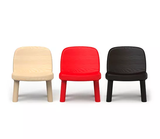 L’assise et le dossier sont faits de deux morceaux de cendre inversés; Les pieds sont également en bois massif. Maximus est disponible en bois laqué clair ou dans un choix de couleurs. Le noir et rouge est le préféré de Johan Ansander.