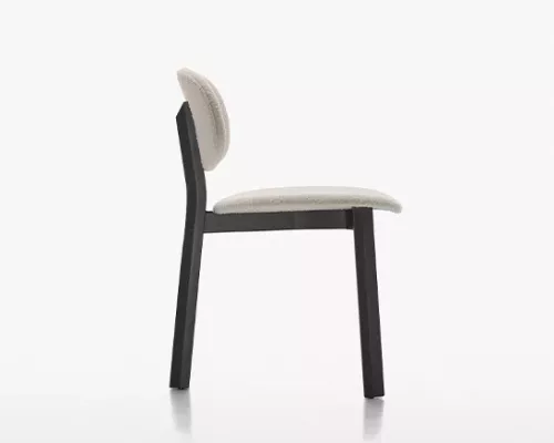 Avec son contraste de courbes et de lignes droites, la chaise se pare aujourd’hui, au niveau des pieds et de la structure en bois, de dimensions et de proportions encore plus gracieuses. Se distinguant par ses détails uniques – notamment la section des pieds évoquant le célèbre Flatiron Building de Manhattan à New York – ainsi que par ses barres transversales, qui les unissent et dont la répétition représente un élément graphique distinctif, la chaise Med peut être facilement assortie avec tous les types de tables. La structure en bois est ornée d’un revêtement disponible dans des couleurs intenses qui fait de la création d’Acerbis et de Stoppino un élément polyvalent étoffant parfaitement la collection Remasters.