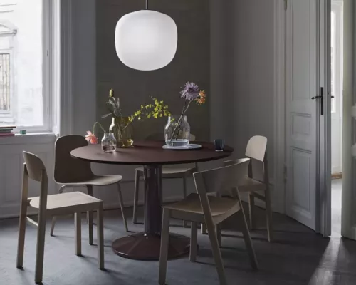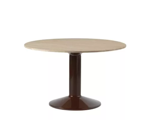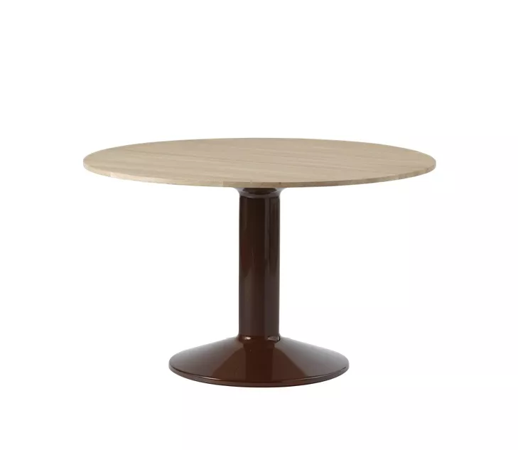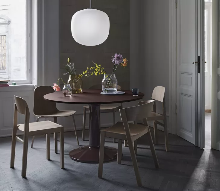 Le studio créatif Midst se distingue par des détails soignés et l’utilisation de matériaux contrastés : du chêne massif mat ou du linoléum reposant sur une base monolithique en acier filé, offrant une finition durable et brillante. Midst est disponible dans de nombreuses finitions et propose deux diamètres différents.